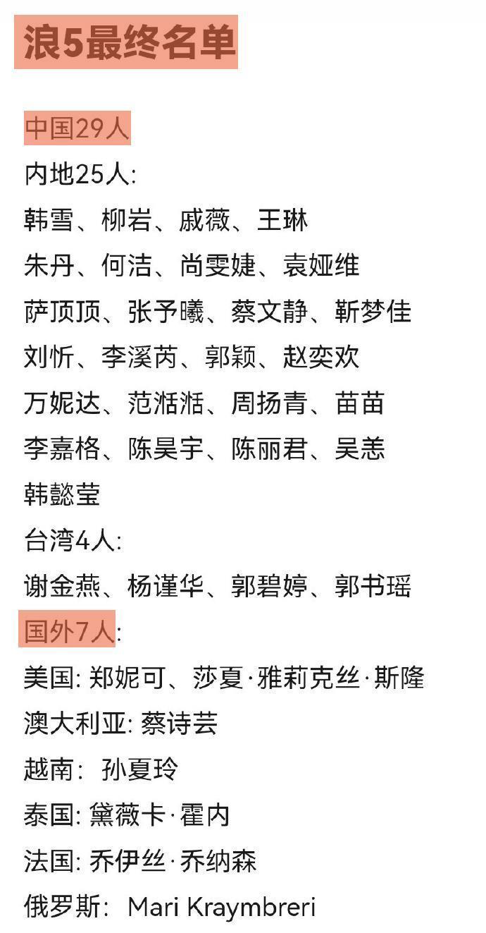太大牌的艺东谈主不肯意“自降身价”来比赛,不知名的艺东谈主想来节目组又看不上,嘉宾威望一季不如一季。这少许在《浪姐5》的嘉宾东谈主选上就能看出线索,36位嘉宾真是找不出一个能撑得住门面的大姐大。